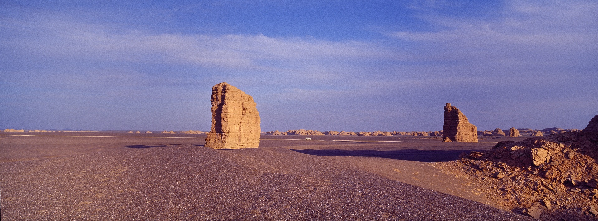Dunhuang Yardang National Geopark, also known as Yadan Park is a huge desert of sand and rock offering magnificent landscapes. Located at the junction of Xinjiang province and Gansu province in northern China, close to the mysterious Lop Nur, about 180 kilometers northwest of Dunhuang city, Yadan Park occupies an area of about 400 square kilometers, which makes it the largest landform in the region. This unique landform was sculpted slowly by the desert wind over 7 million years, and it offers rock formations with unique ocher colors immersed in a surreal desert atmosphere. The visit to the park is fascinating and immersion in this world begins by walking the Silk Road for more than an hour and a half in the heart of the desert.