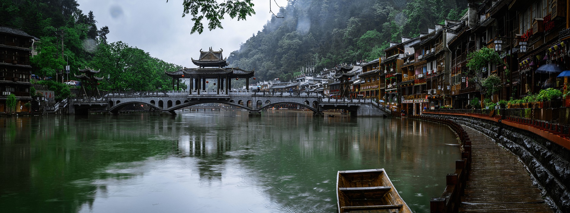 For a long time, Fenghuang was a town located on the border between the Han people and the Miao, Tujia, and Dong countries. Sheltered by its ramparts built under the Ming, Fenghuang prospered as a commercial and cultural city. Along the river, the town has developed around small alleys with traditional houses and many temples. The omnipresent water encouraged the inhabitants to build many stilted buildings.