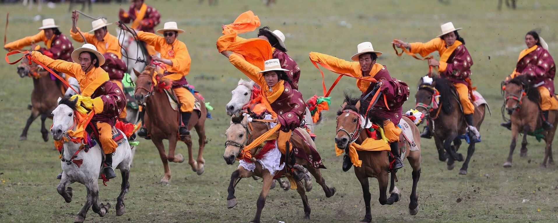 It is held from August 1 to 5 each year. Tibetans come from all over Kham, Amdo, and Central Tibet to set up their tents on the vast grassland. The most exciting part of this festival is the horse racing. Brave riders take their lovely decorated horses to compete in the races showing off their excellent riding skills including picking up some sort of ball from the back of a running horse and shooting at galloping targets. The women are dressed in traditional jewelry and look beautiful as they cheer on the riders.