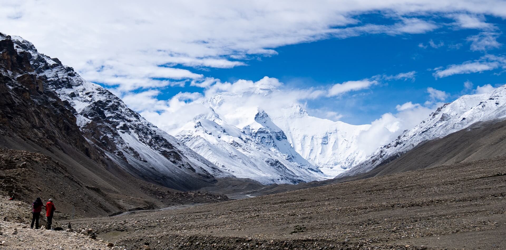 With a height of 8,848 m, Everest is the main peak of the Himalayan range and the highest peak in the world. Lying on the border between Tibet and Nepal, Everest dominates the others with its gaze and resembles a gigantic pyramid that stings the sky. Its base camp is located at an altitude of 5,200 meters at the foot of the Rongbuk glacier.