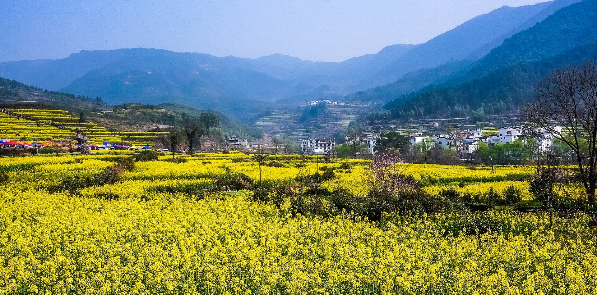 The best time for visiting Wuyuan is March-April, the flowering period of canola, and October-December, the season for viewing red leaves.